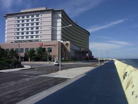 | banquet会場で,共同研究者との一コマ. | 黒豚焼き肉の夕食. 最高でした. | 海のそばの学会会場. | |